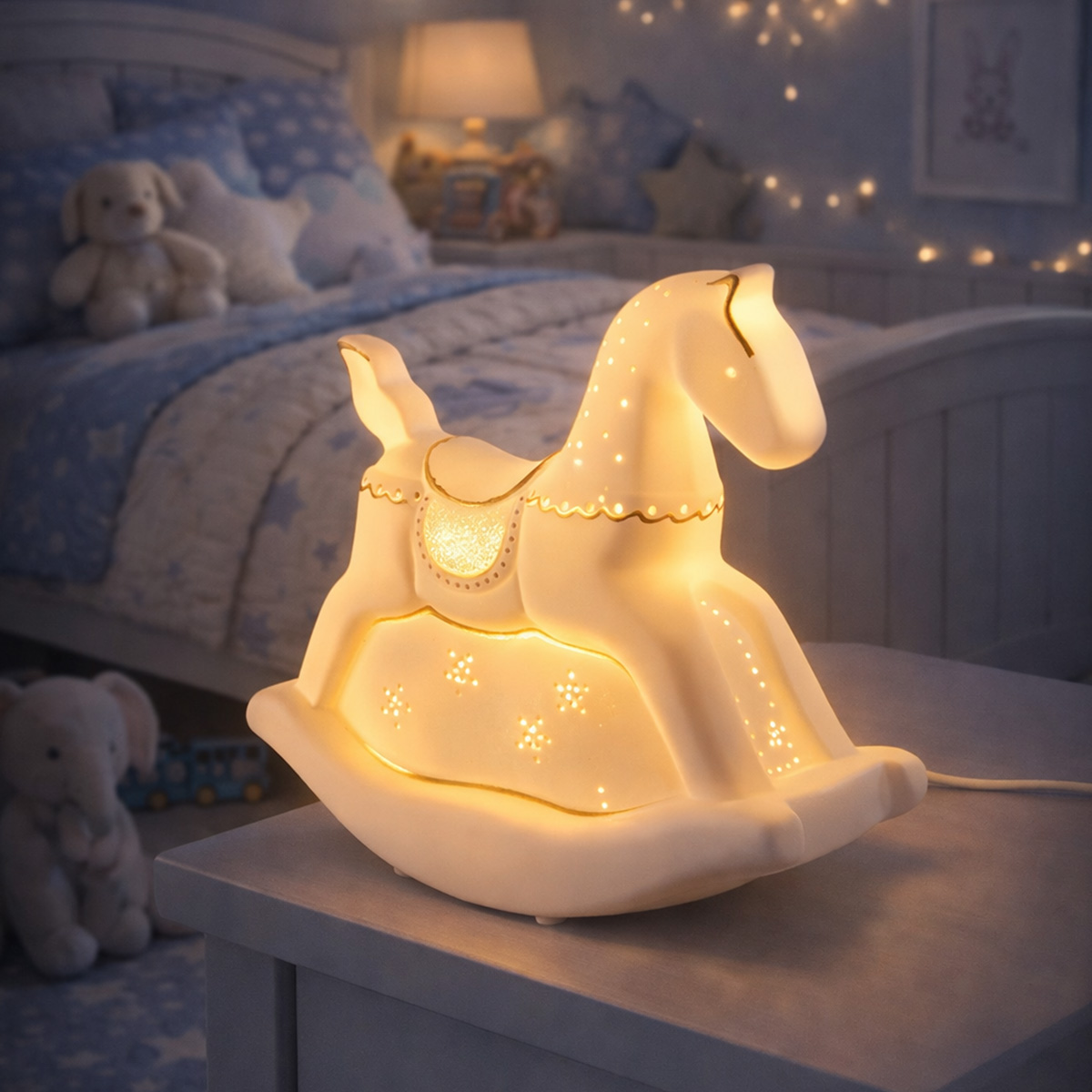 Lampada in ceramica Cavallo a Dondolo